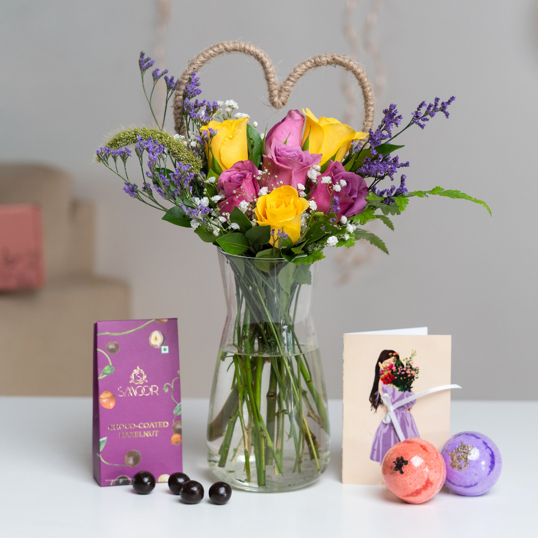 Surprise your significant other with a bouquet, a customised jewellery, or a handmade love letter. Prepare a romantic bath bomb-infused evening, followed by a candlelit dinner for two.