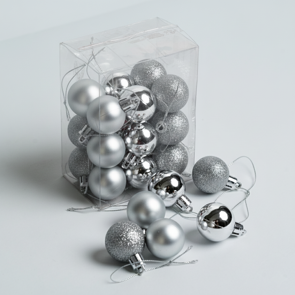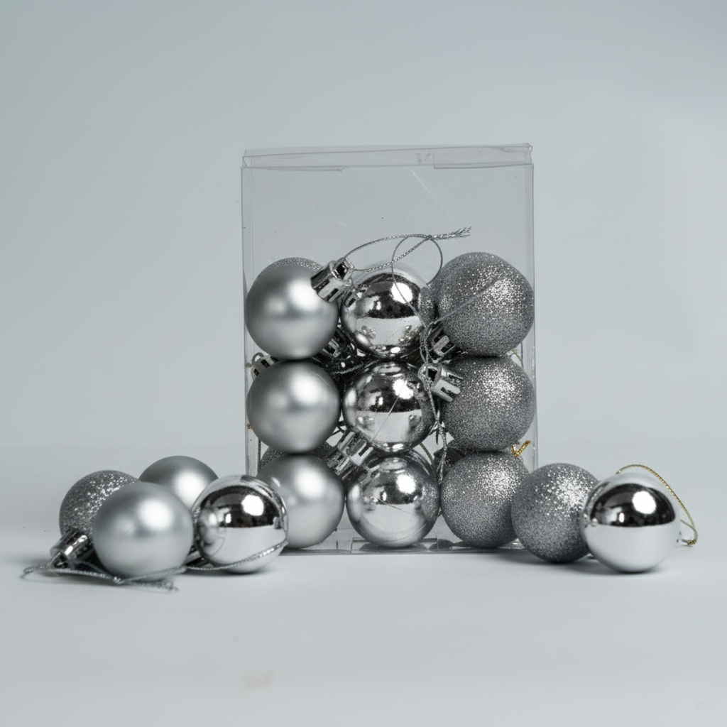 Decorate your Christmas decorations with these stunning set of silver Bauble Ornament décor set .