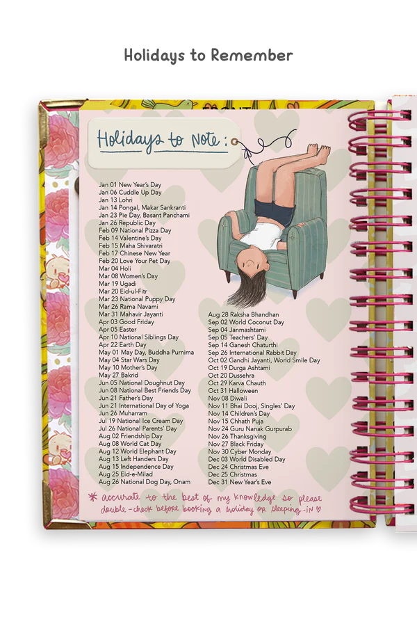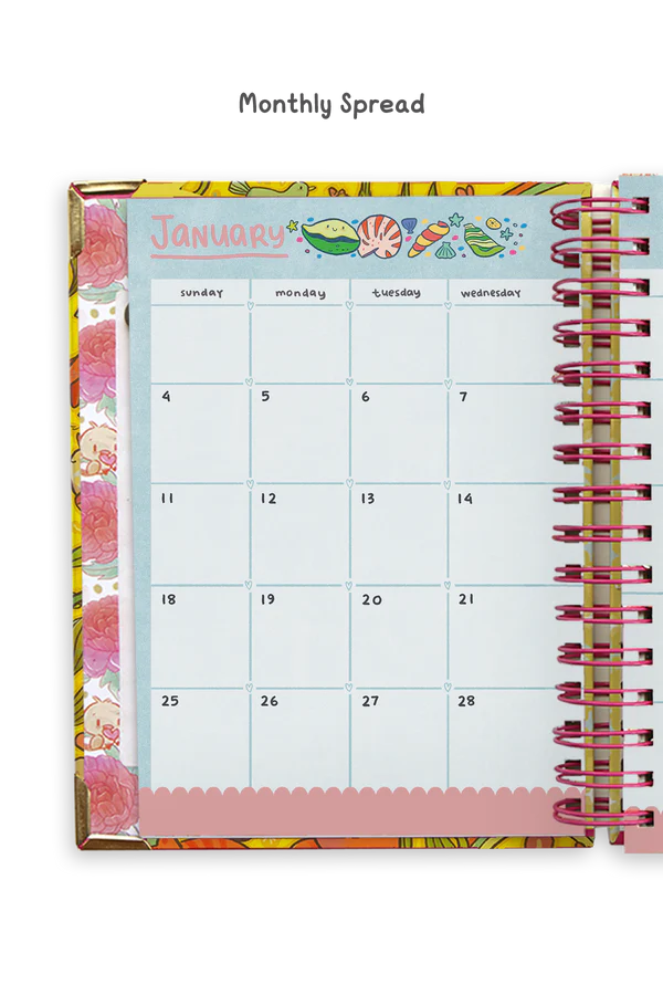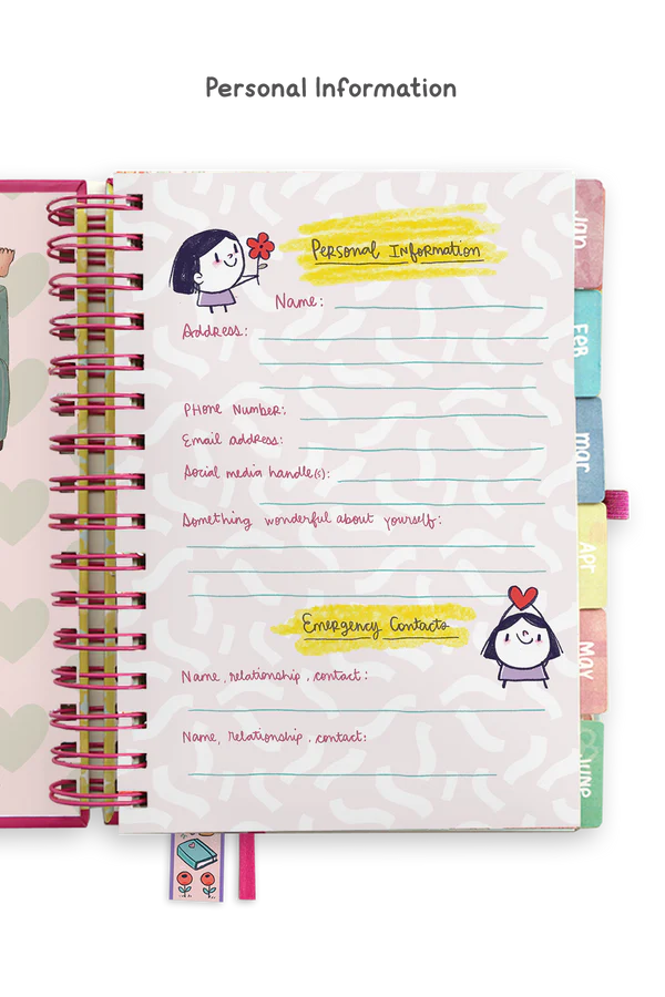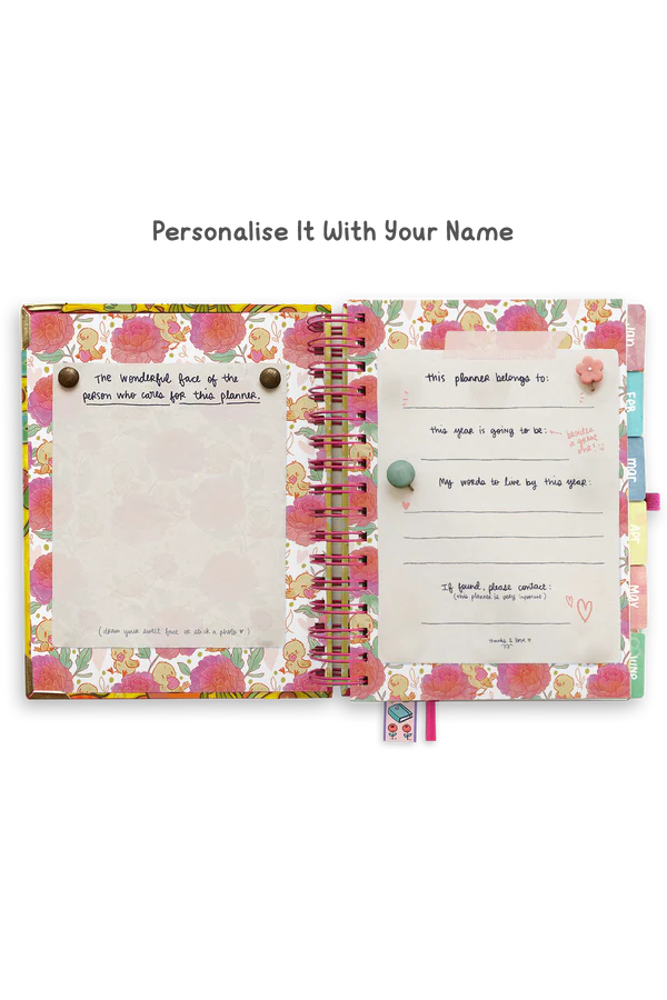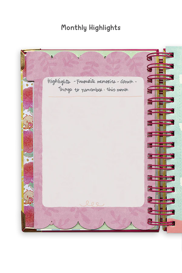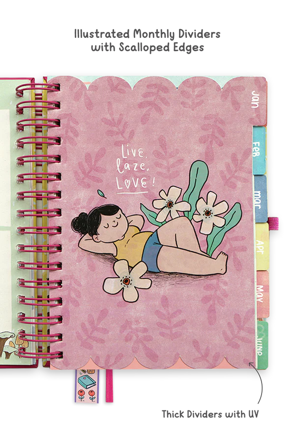 - Beautifully illustrated 12 monthly divider pages with tabs for ease of use.