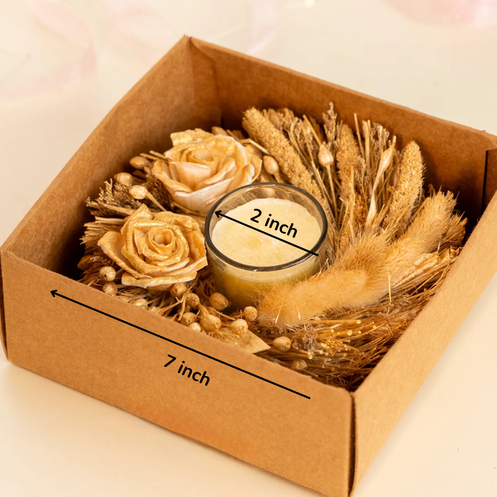 Elevate your decor with our Gold Decorative Wreath with Candle, expertly handcrafted by talented artisans. This luxurious piece features a stunning array of golden foliage and intricate detailing, creating a glamorous centerpiece for any space. The integrated candle holder adds warmth and ambiance, making it perfect for special occasions or everyday elegance. Ideal for adorning your entryway, dining table, or mantel, this wreath combines artistry and sophistication, bringing a touch of opulence to your home. Illuminate your surroundings and celebrate style with this exquisite decorative accent.