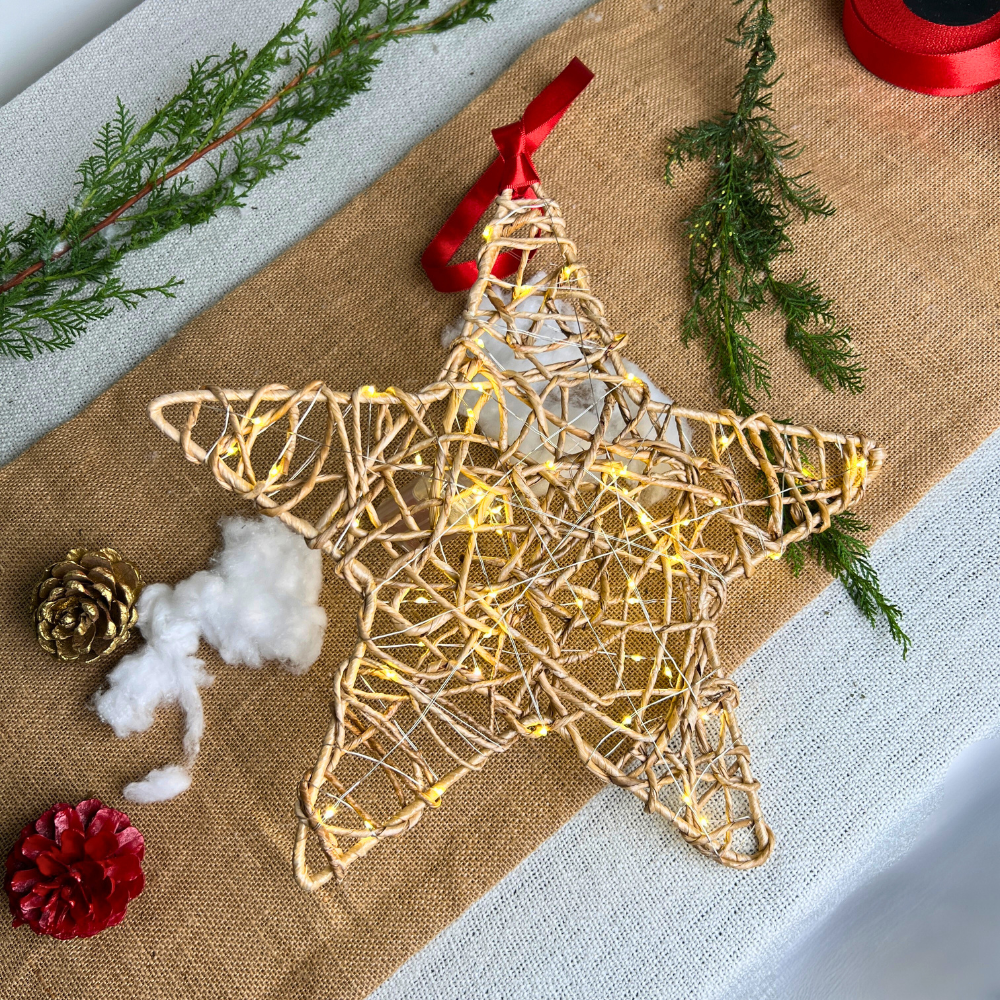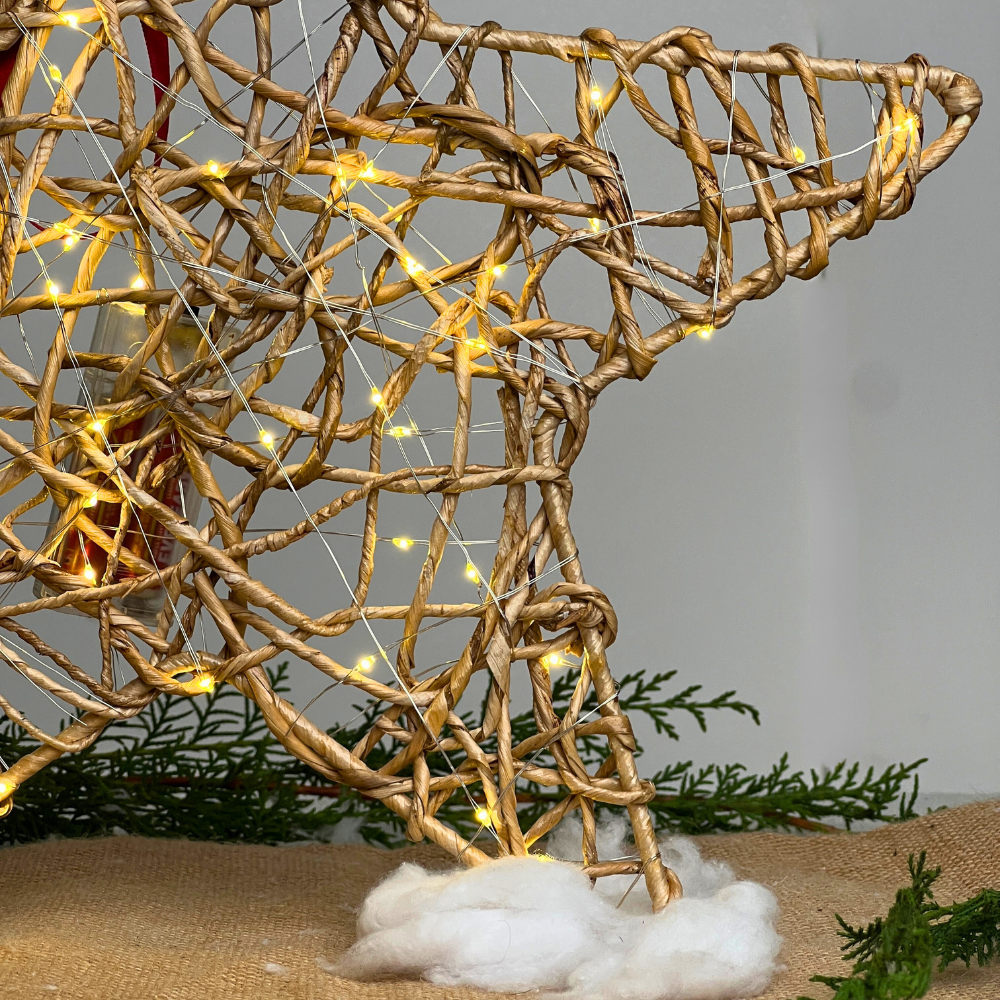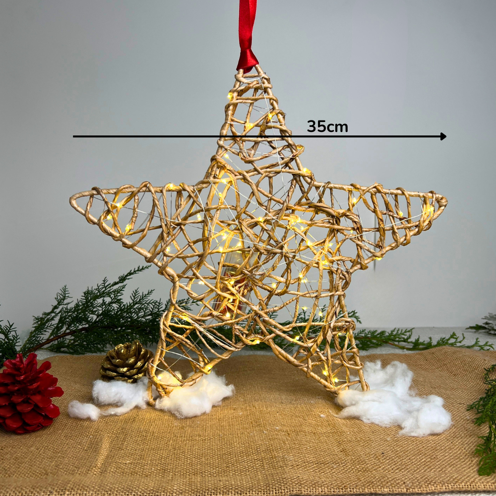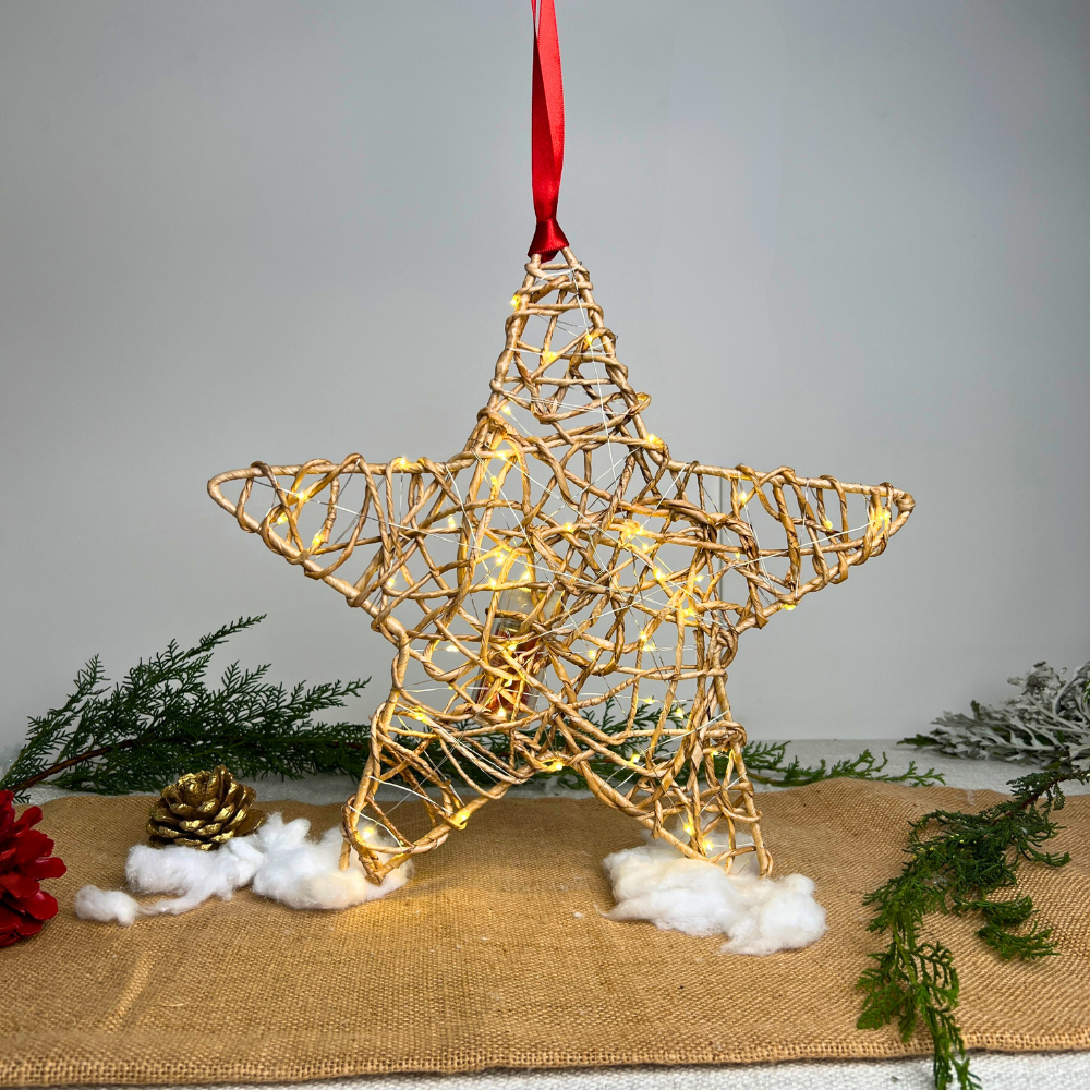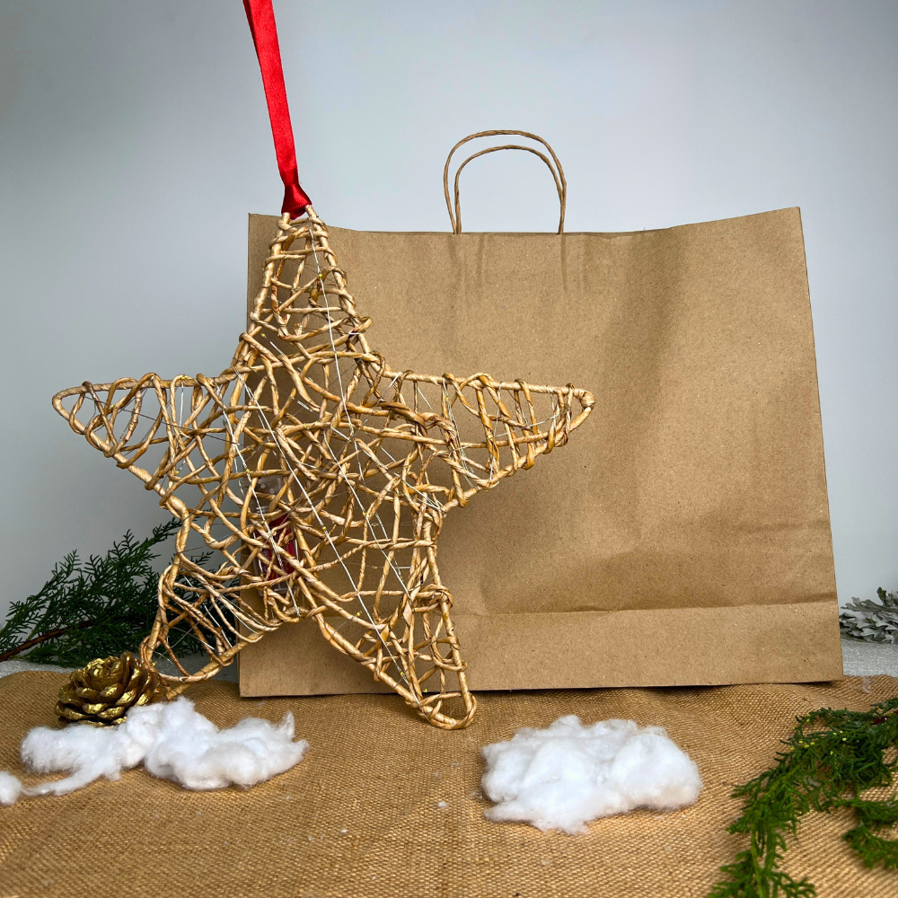 Bring festive elegance to décor with the Hanging Star, handcrafted from banana rope with a charming open-weave design. Featuring a bright red ribbon for easy display, this 35 cm star is ideal for windows, doors, or as a unique statement on walls.