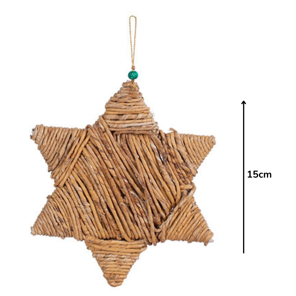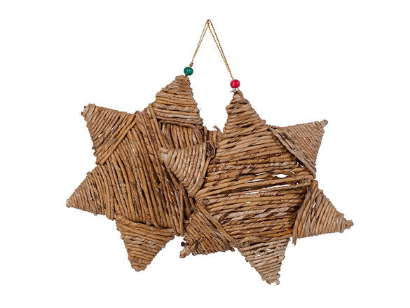 The unique textured design creates visual interest on Christmas trees, mantels, or wall displays. Perfect for both timeless and modern holiday settings, these stars bring natural warmth and character to any seasonal arrangement.