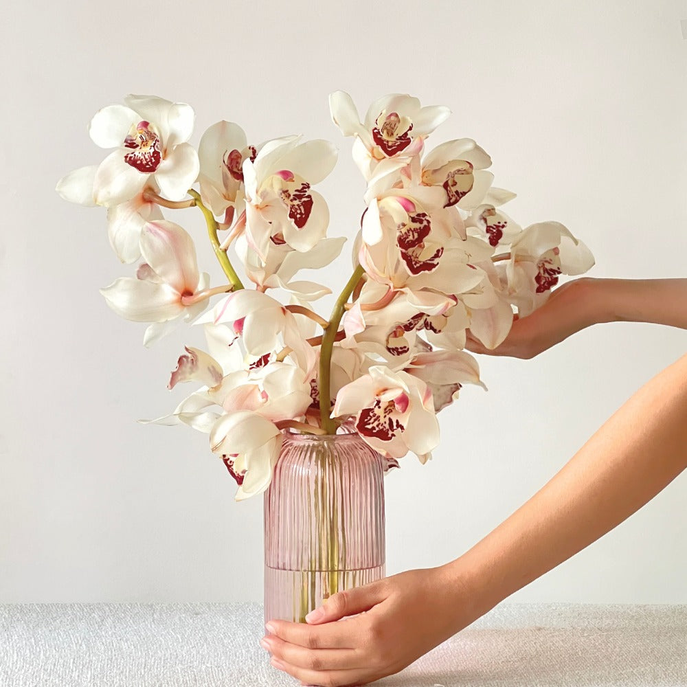 White orchids symbolize pure luxury and refined elegance, instantly elevating the ambiance with their sophisticated presence. Honor your loved ones with effortless grace and make the occasion truly memorable.