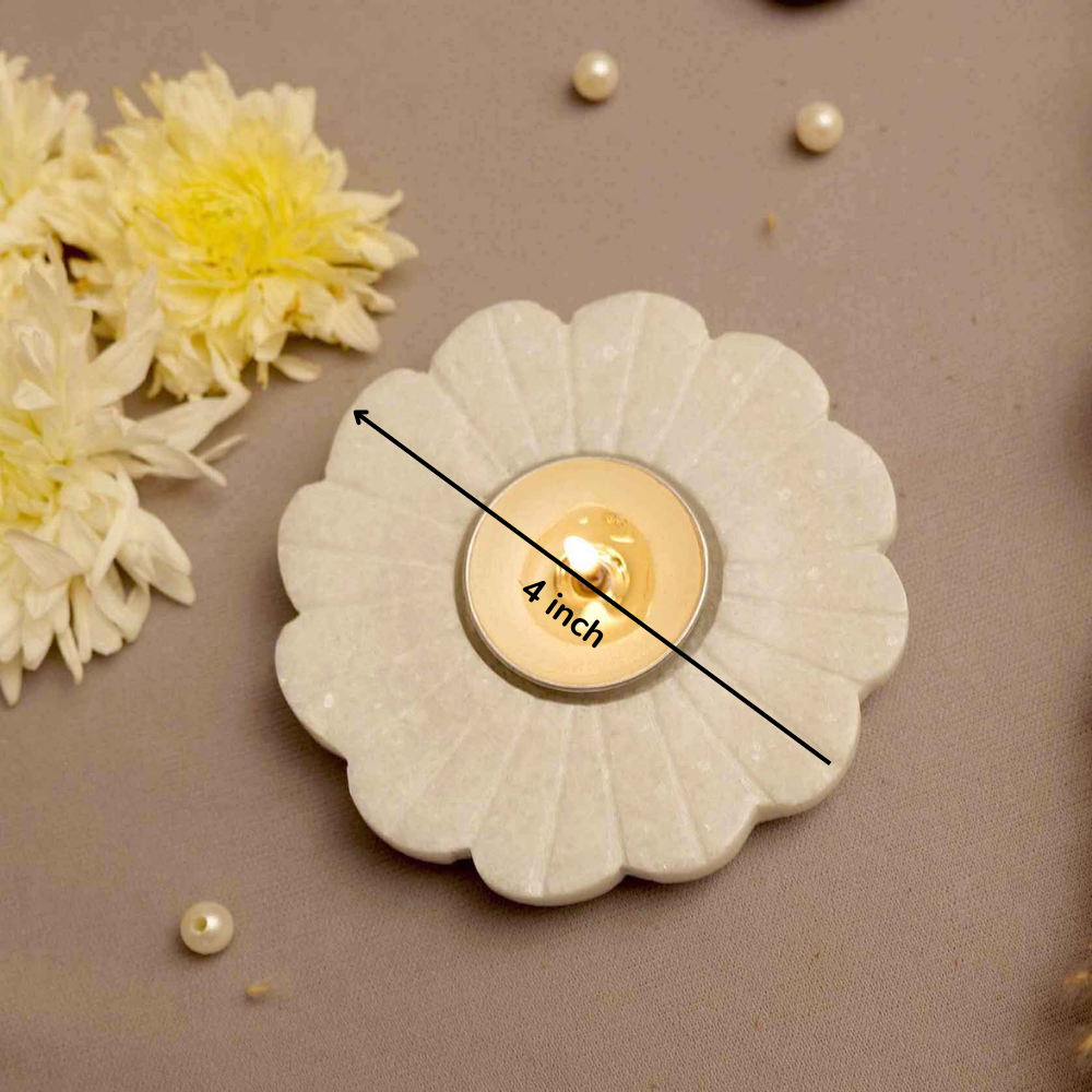 Illuminate your space with our 4 Flower Tea Light Holder, handcrafted by talented artisans. Featuring intricate mandala designs, each holder is made from premium marble, ensuring both beauty and durability. The delicate patterns create a mesmerizing play of light and shadow when a tea light is placed inside, adding warmth and serenity to any setting. Perfect for enhancing your home decor, meditation spaces, or as a thoughtful gift, this tea light holder beautifully marries artistry with functionality. Create a tranquil atmosphere with this stunning piece.