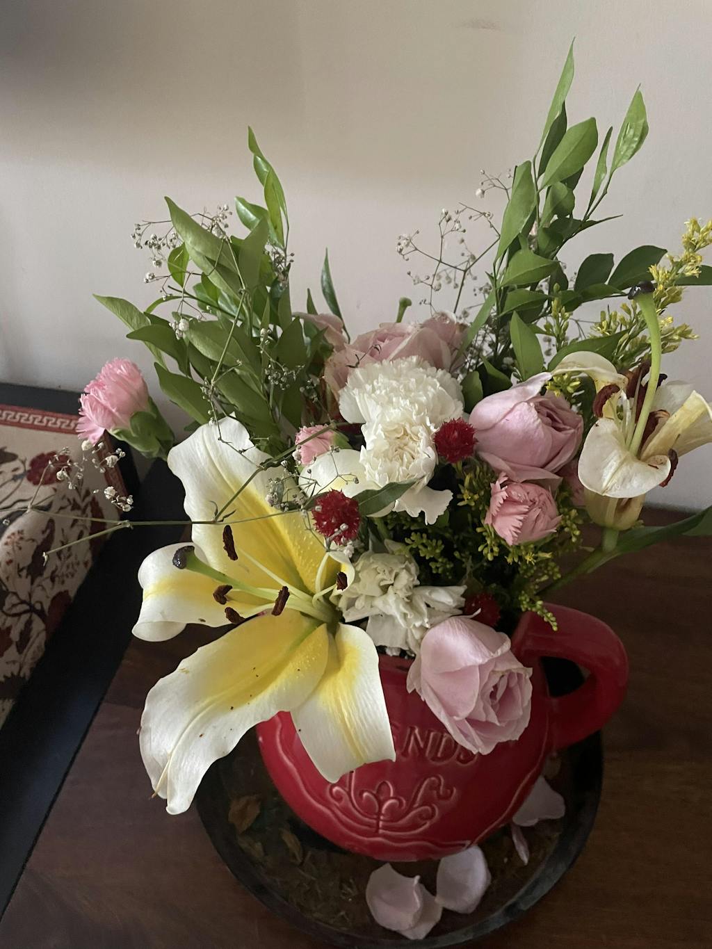 Types of flowers: Snapdragon, Oriental lilies, Gomphrena