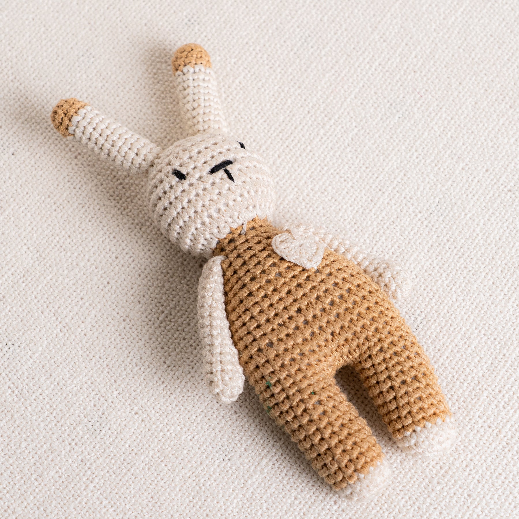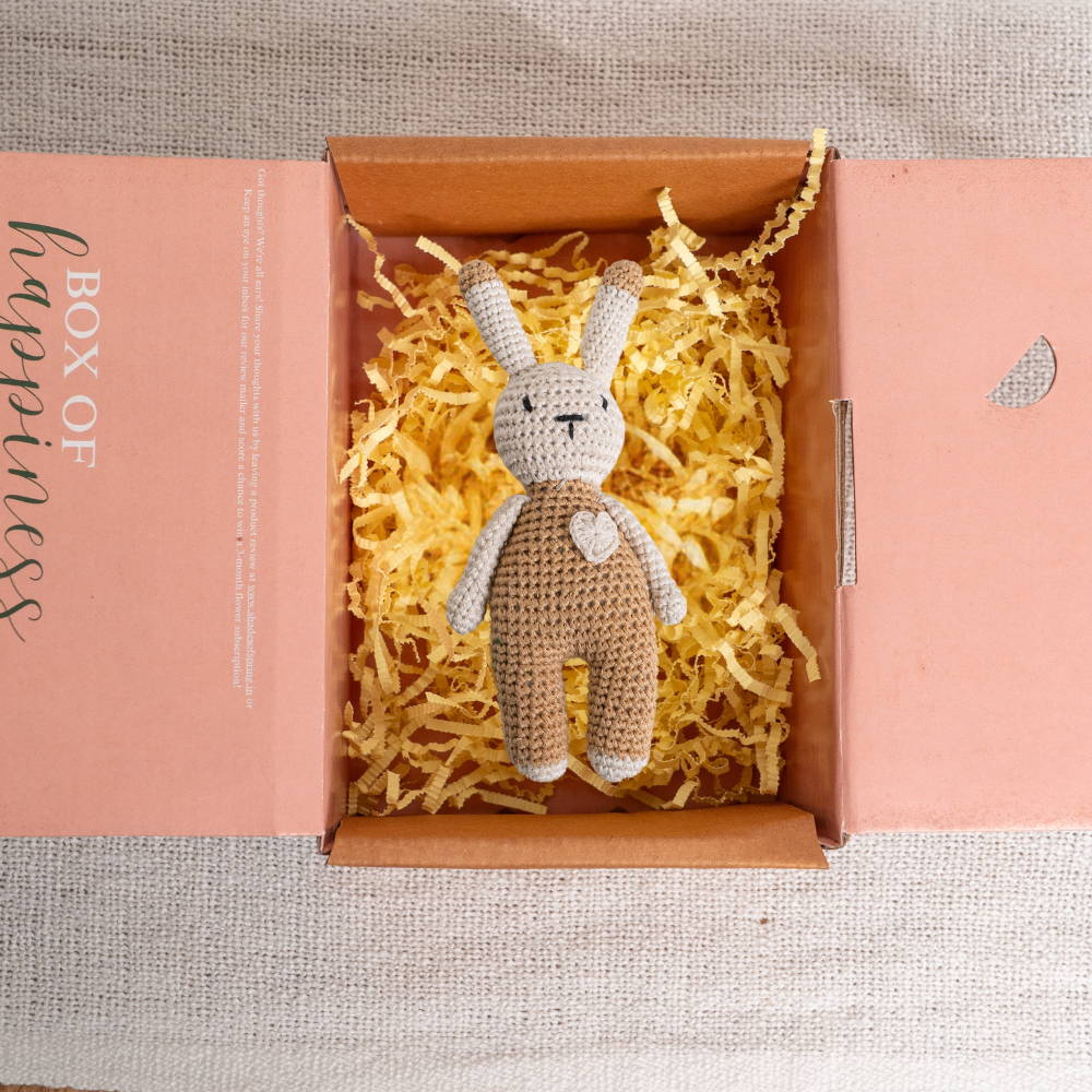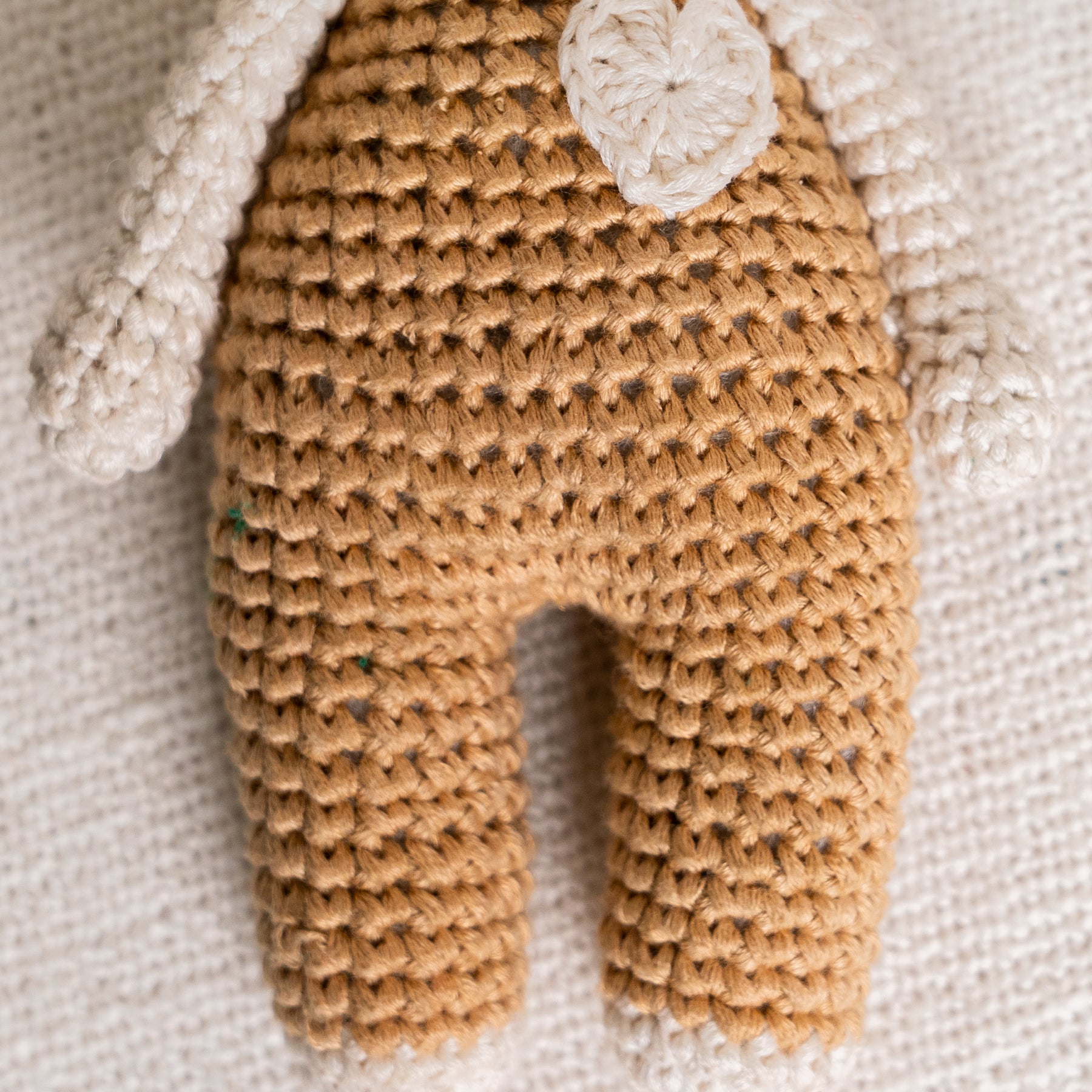 Soft, soulful, and stitched with love — meet Heartwhisk Bunny, your handmade companion for cozy cuddles and heartfelt gifting. Crafted with warm beige and chestnut yarn, this crocheted bunny wears a charming brown romper adorned with a delicate white heart patch, symbolizing comfort and care.