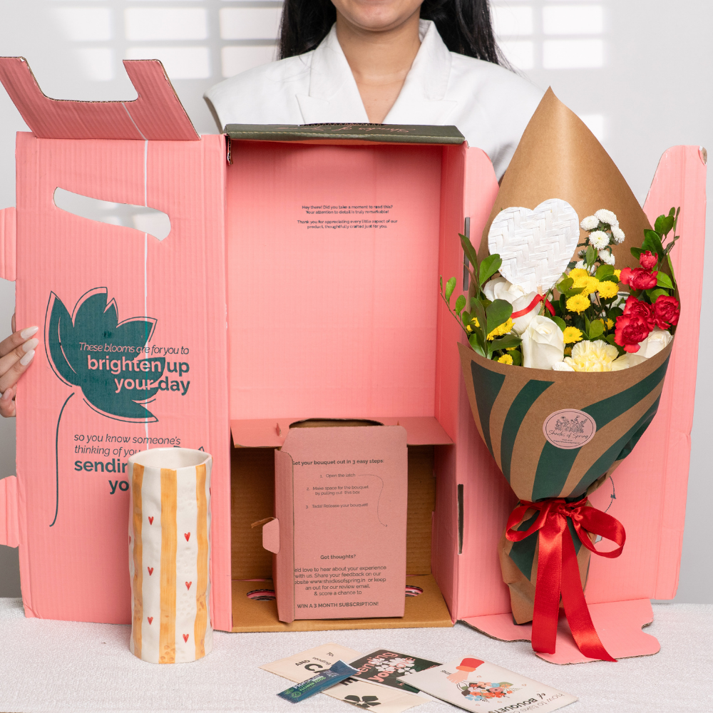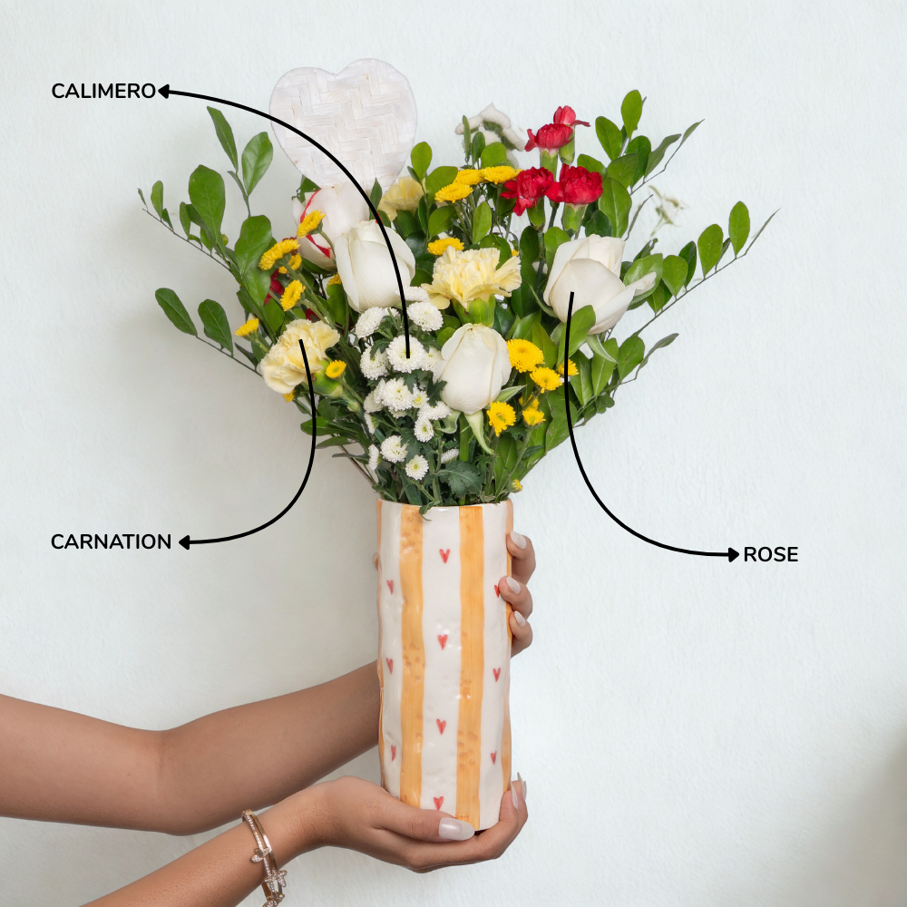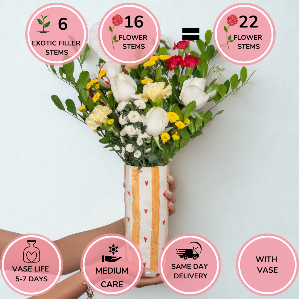 This tall vase arrangement is a celebration of affection in its purest form. Perfect for Valentine’s Day, anniversaries, or heartfelt surprises, it’s a gift that speaks of joy, devotion, and love everlasting.