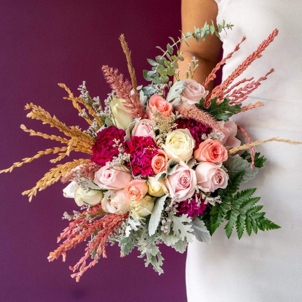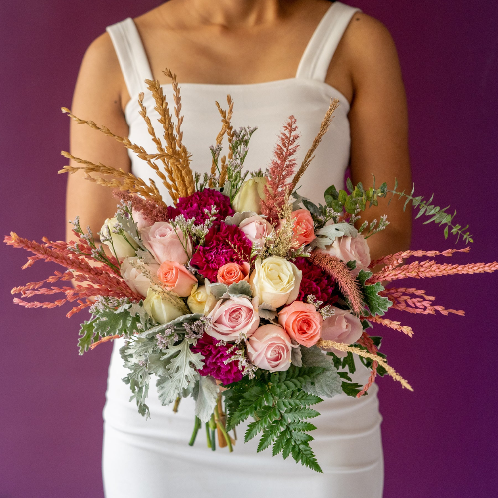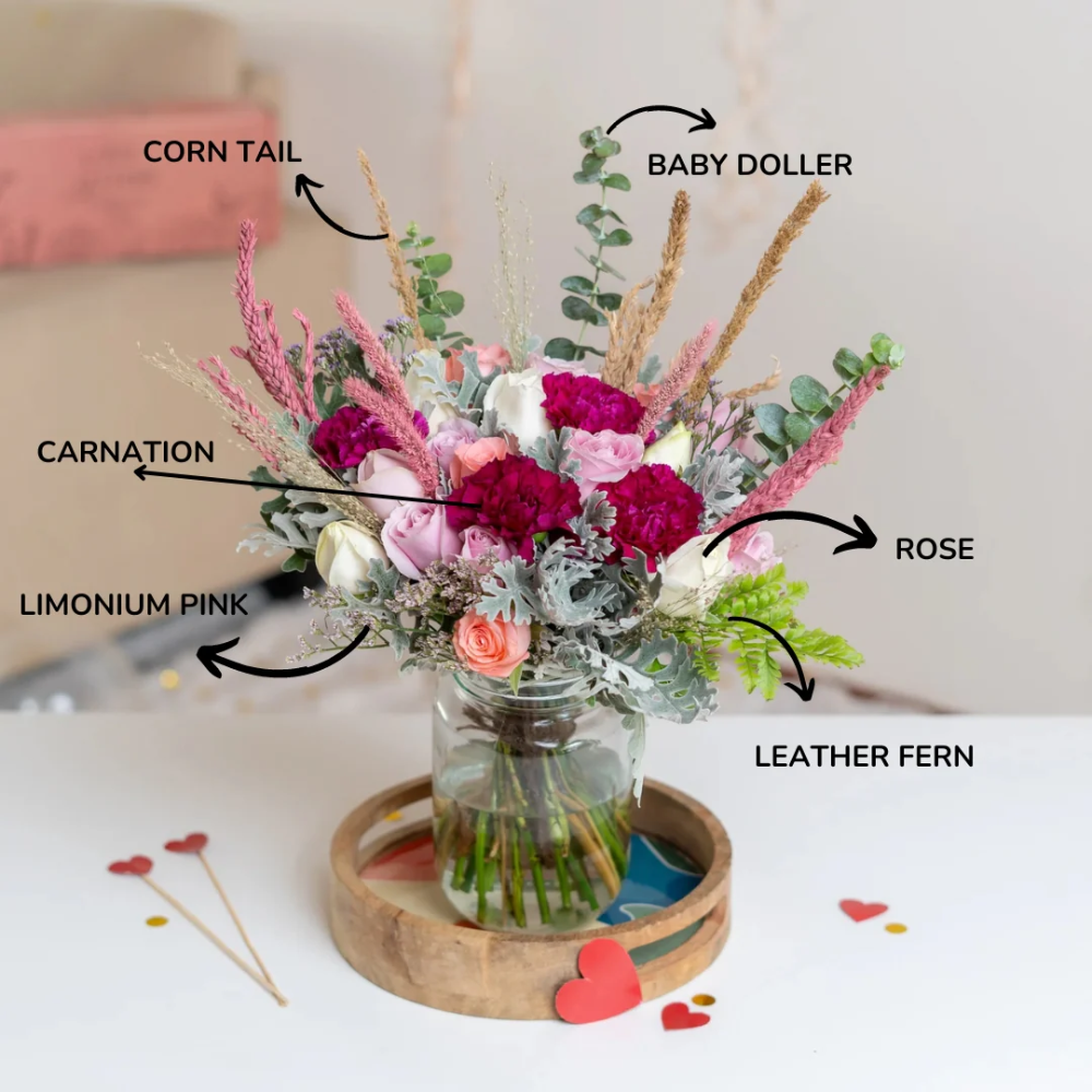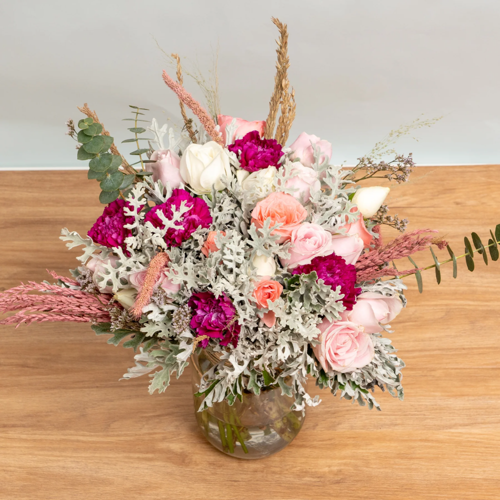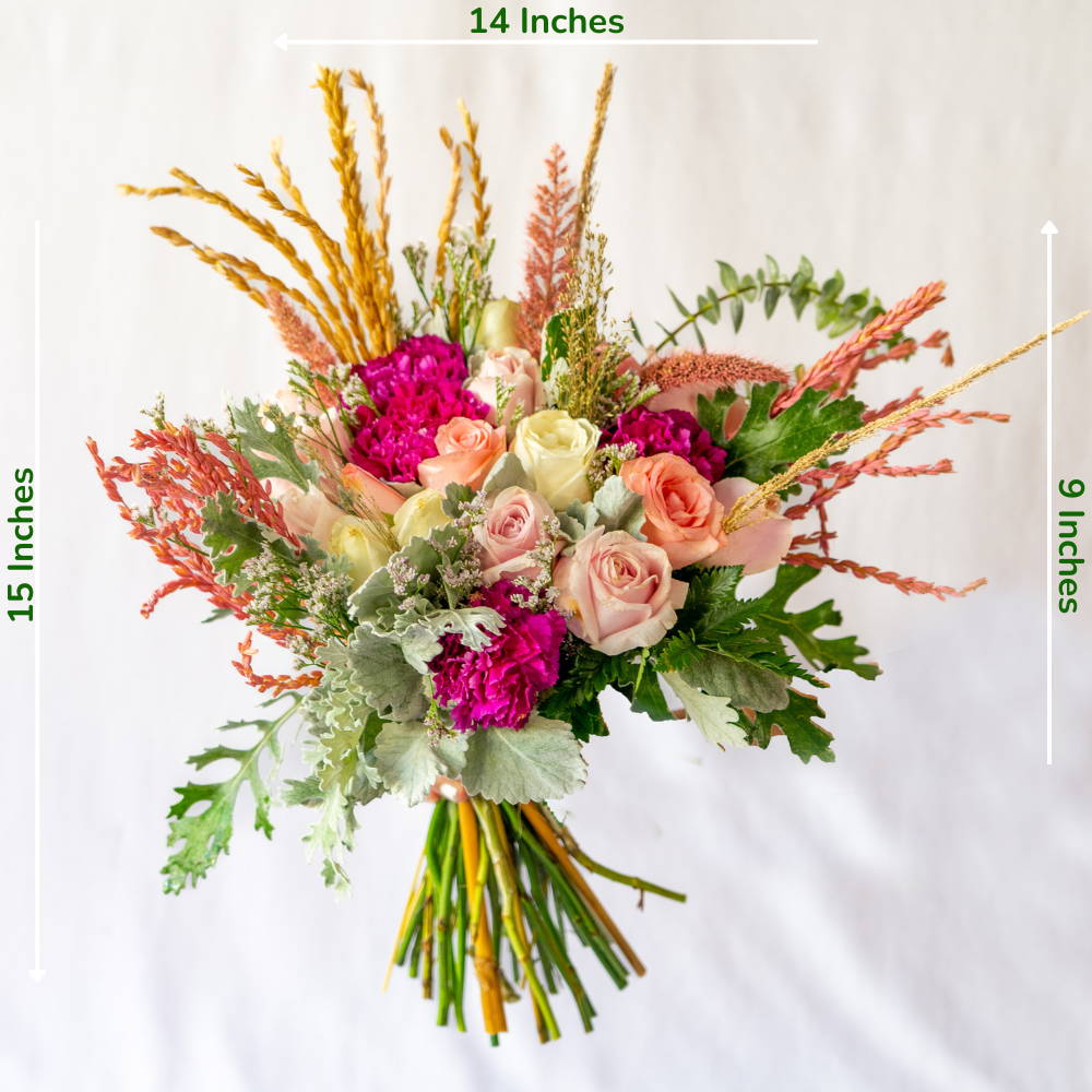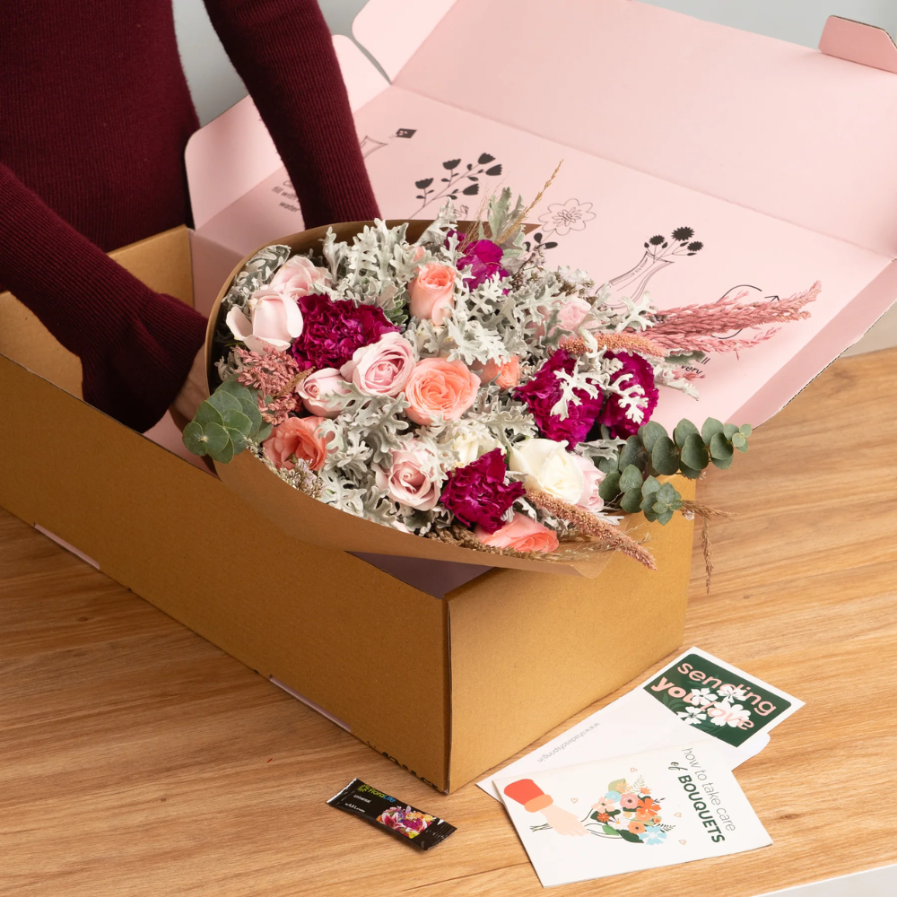Celebrate this Valentine's season with your loved ones with our luxurious new mixed bouquet featuring Carnation purple with Rose Sweet Avalanch. So make sure to surprise your loved one with this floral extravaganza.