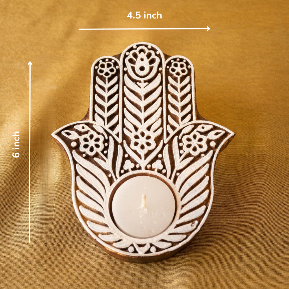 These wooden tea light holder / diya is hand-crafted by using traditional carving skills and techniques. The block is made of solid wood and are completely carved by hand by artisans from Farukabad in UP. Its curated with traditionally printed dry flower card which will send prosperous wishes to your loved ones. They can fit into any corner of the house, or they can be terrific gifts to your loved ones