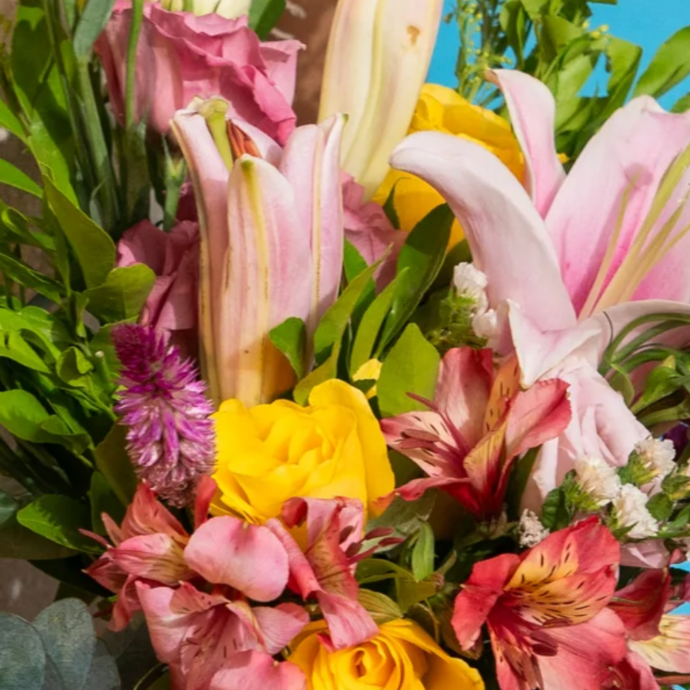 Delicate pink lilies intertwine with majestic purple orchids, creating a mesmerizing blend of color and fragrance. Each bloom radiates with beauty, evoking a sense of admiration and affection. Perfect for expressing love, gratitude, or admiration, Blushing Beauty is a stunning gift that will leave a lasting impression on any recipient.