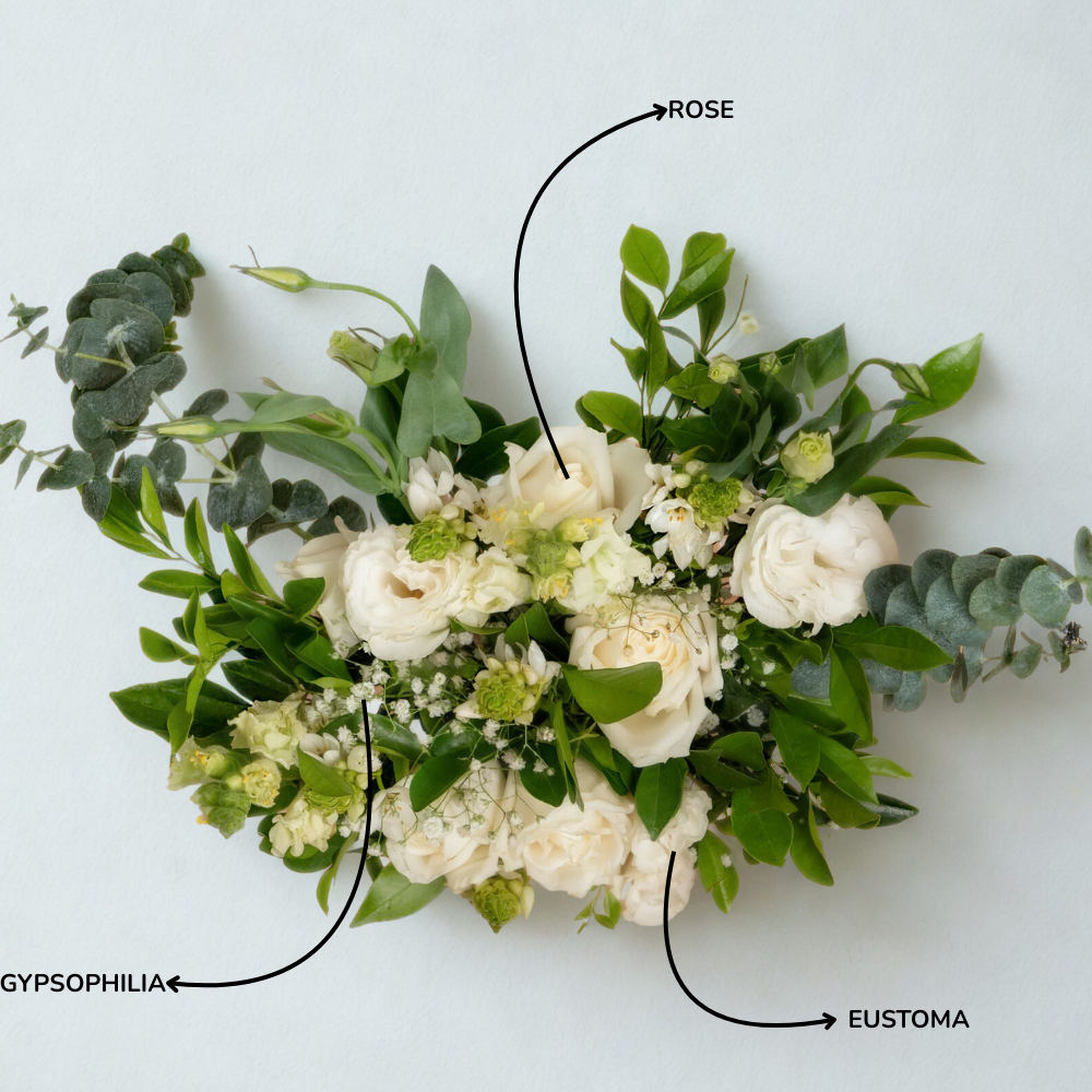Rose white Eustoma white Snapdragon white ORNITHOGALUM Gypso Baby dollar kamini