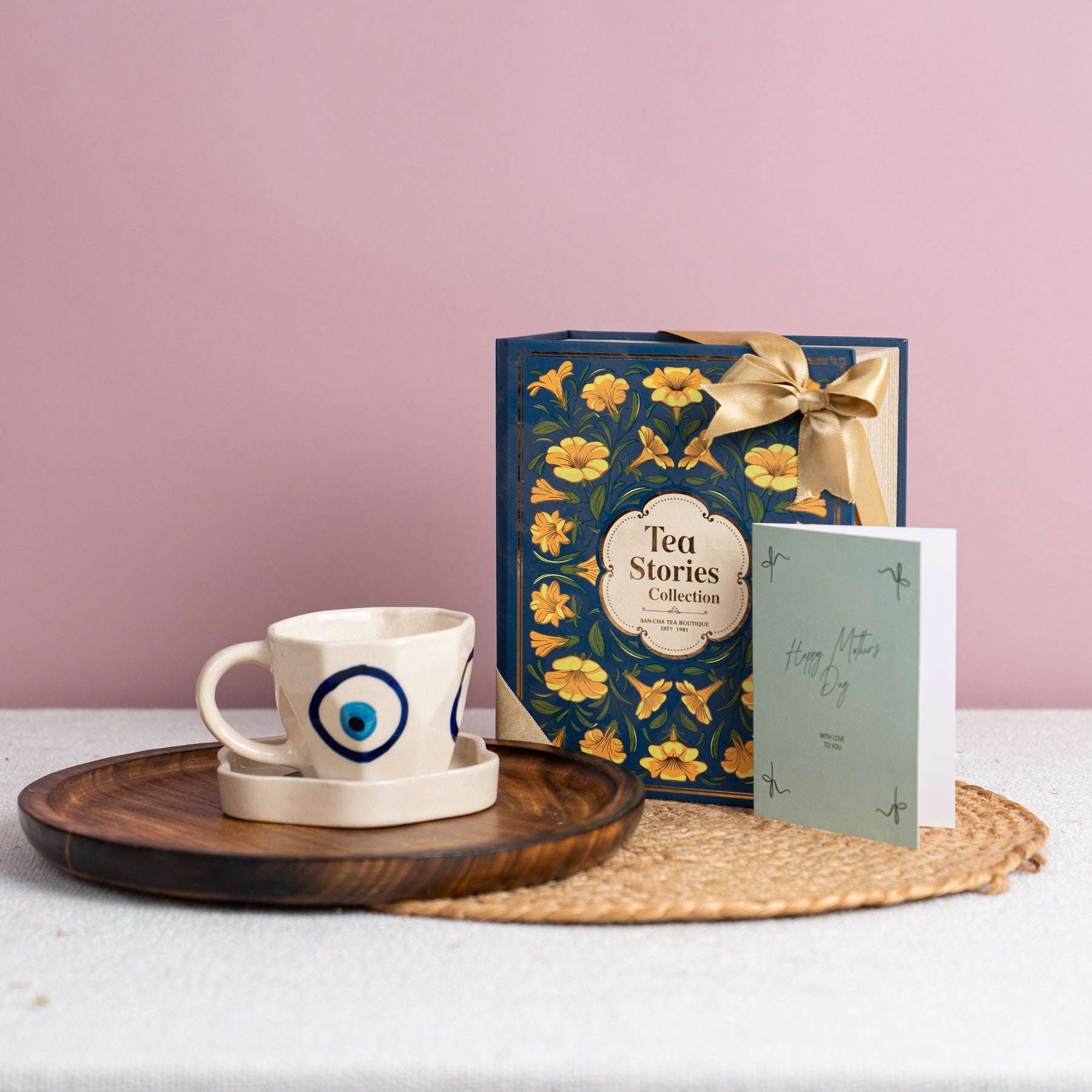 Includes - Tea Stories Collection: Tea Gift Box( Pack of 3), Evil Eye Mug With Saucer & Mother's day card