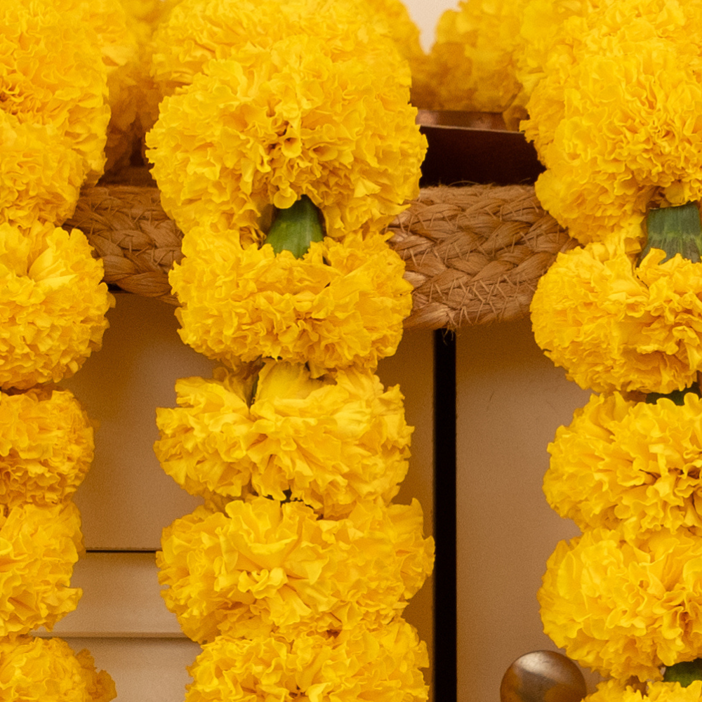 Looking for a better way to create an instant festive vibe?? This set of bright yellow marigold strings is all that you need. Make this festive season more traditional by just hanging these classic strings.