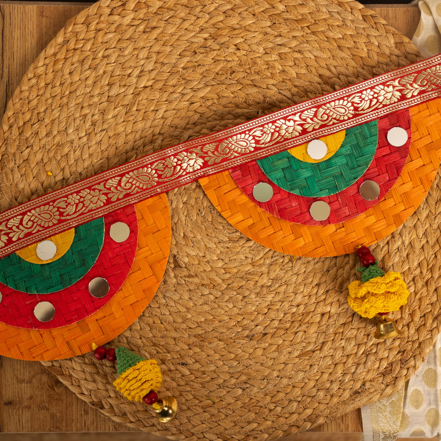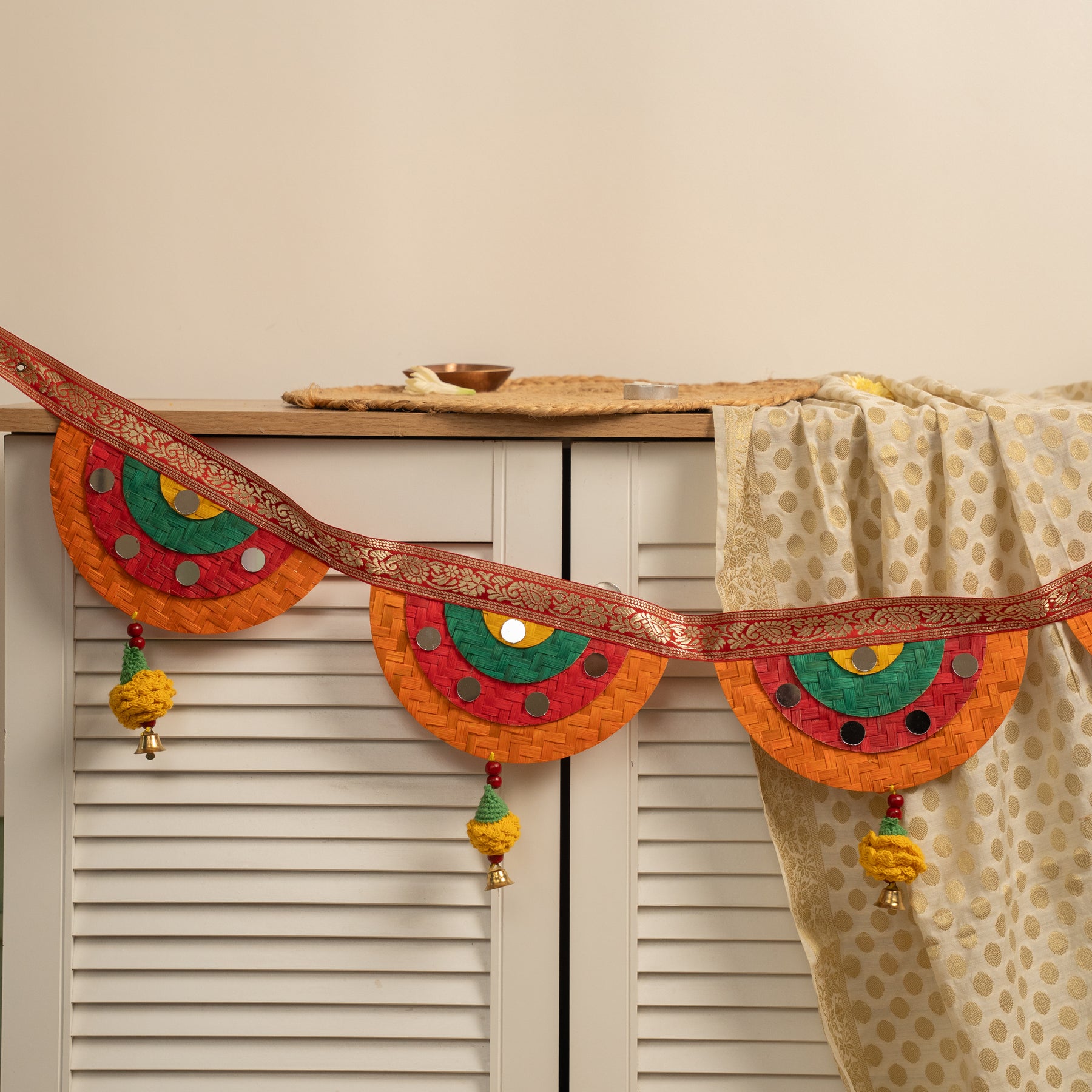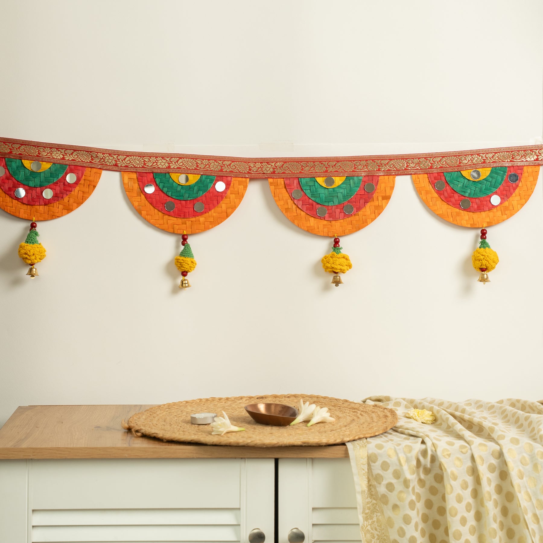 A graceful blend of vibrant, multi-colored marigolds, thoughtfully woven into a toran that exudes tradition and charm. The Elegant Satrangi Marigold Torans add a touch of auspicious beauty to any doorway, creating a warm and festive welcome.