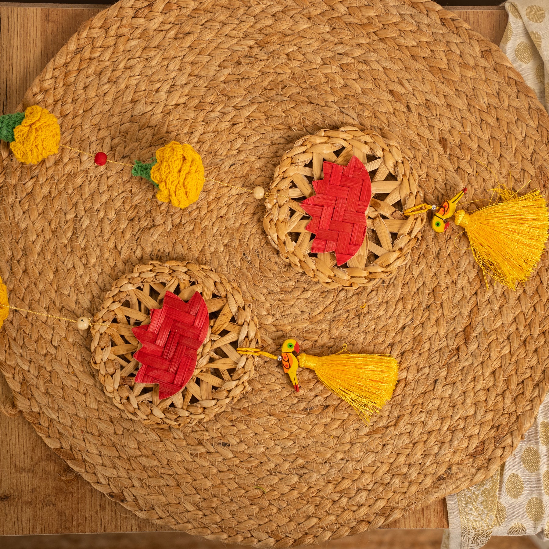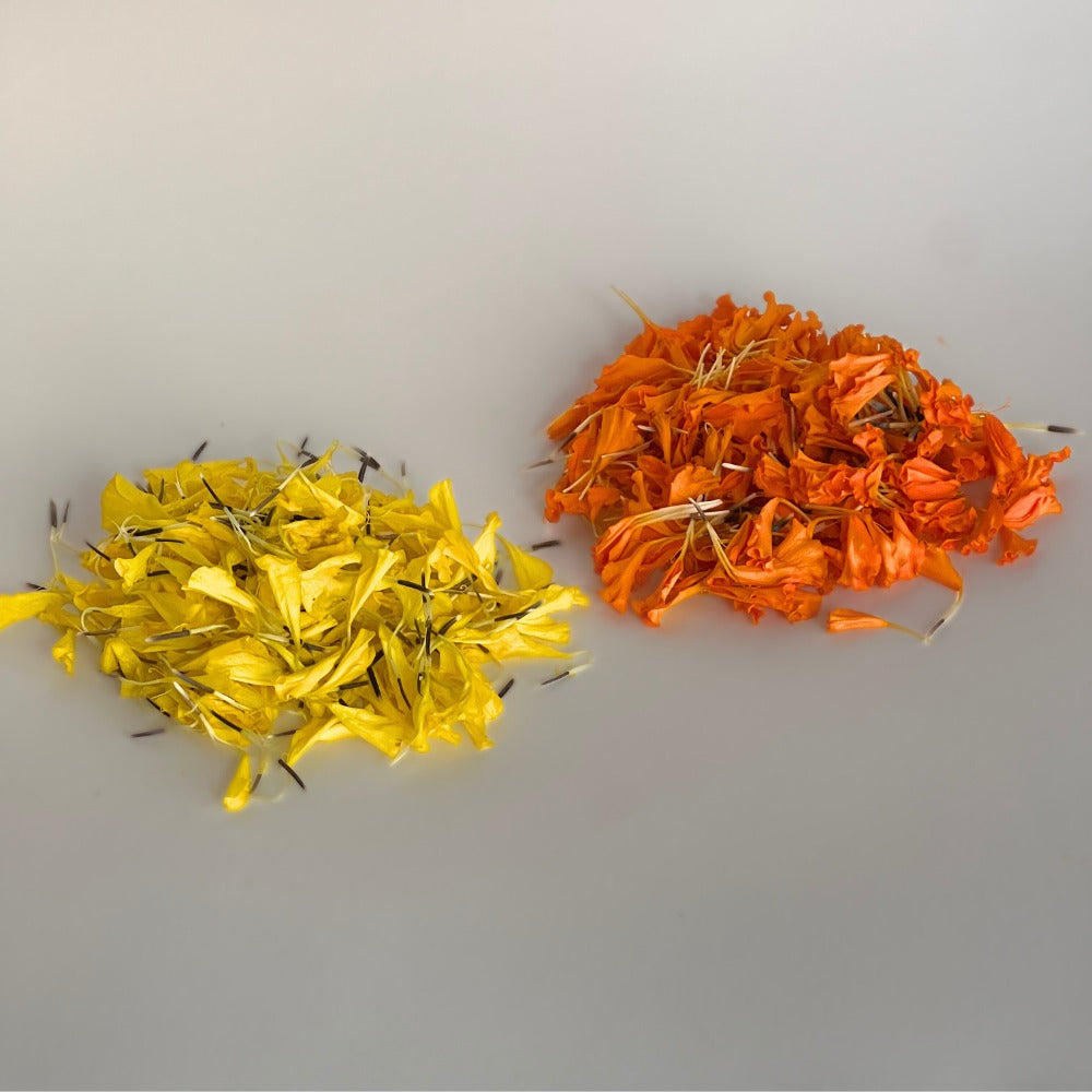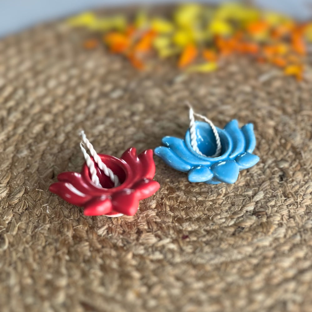 Includes: Marigold & mango leaf toran, Tim Tim lights, Urli candle, 2 Ceramic lotus diya with wick , Loose petals, Marigold - Lotus hanging string, Match box & Oil