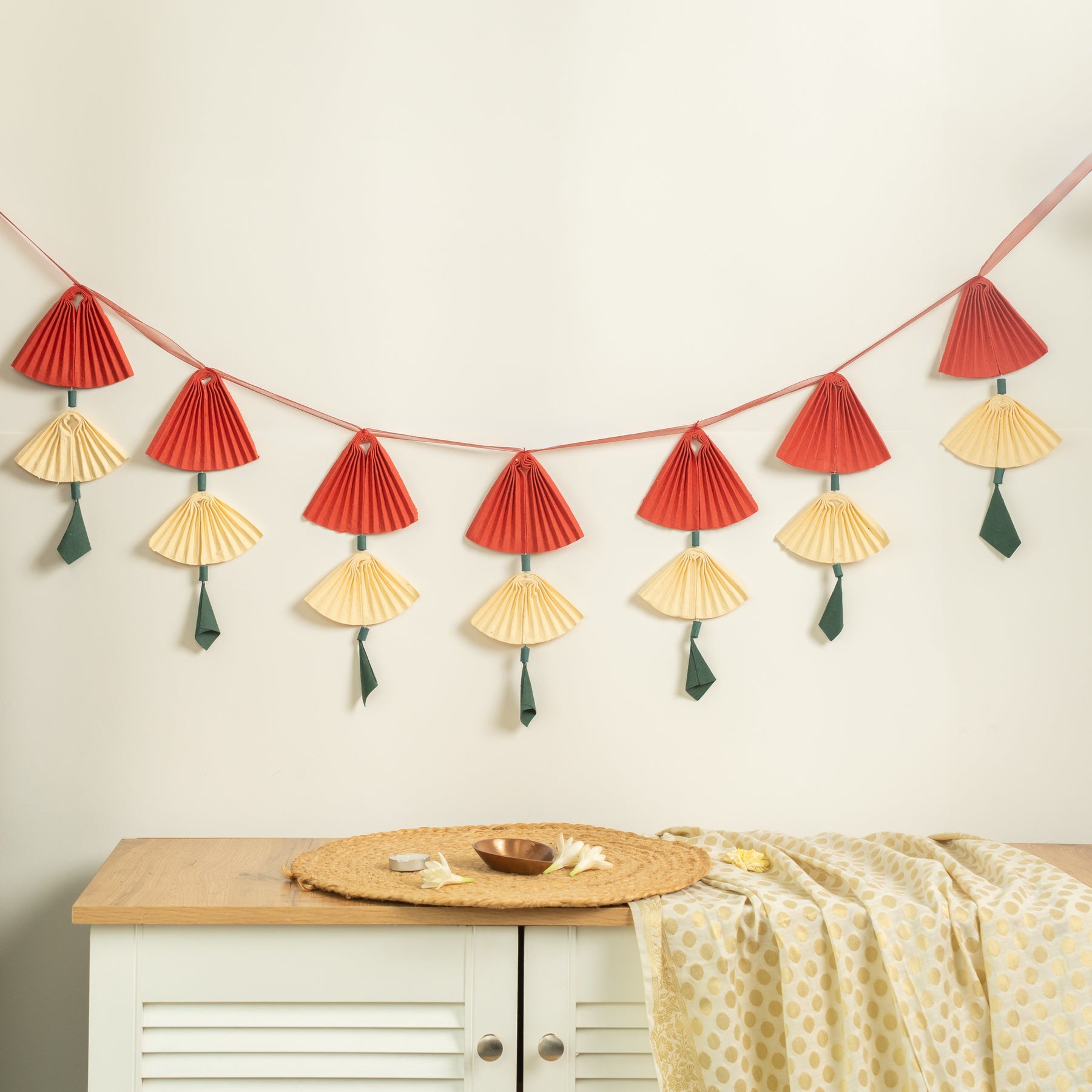 A Beautifully handcrafted decor pieces that blend cultural heritage with creative artistry. Designed to adorn entrances, they bring auspicious charm and a touch of elegance to any celebration. Perfect for festivals or special occasions, they transform spaces with grace and tradition.