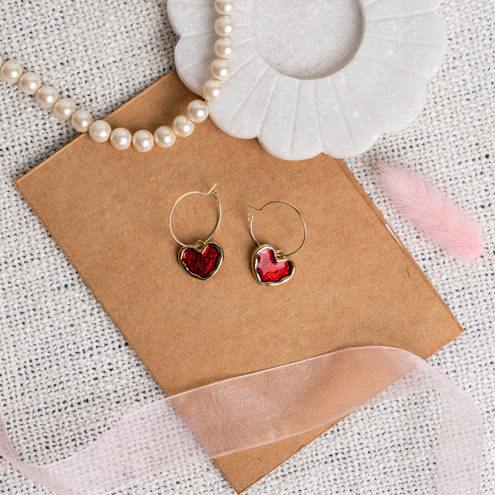 Includes : Midnight Valentine Bouquet, Red heart hoop Earrings, Card