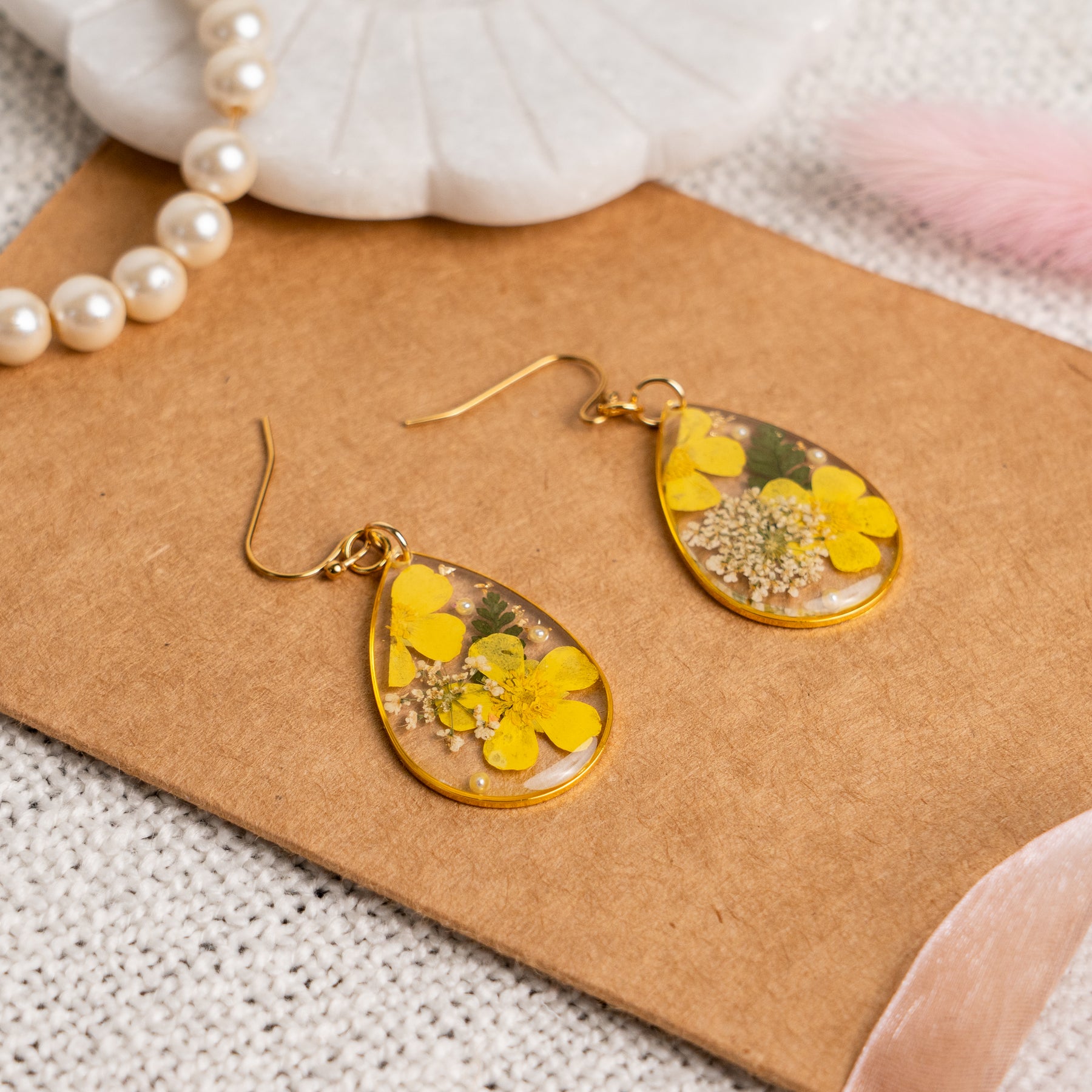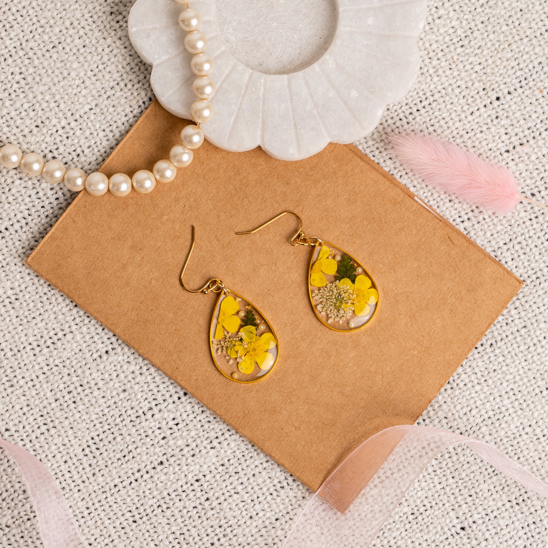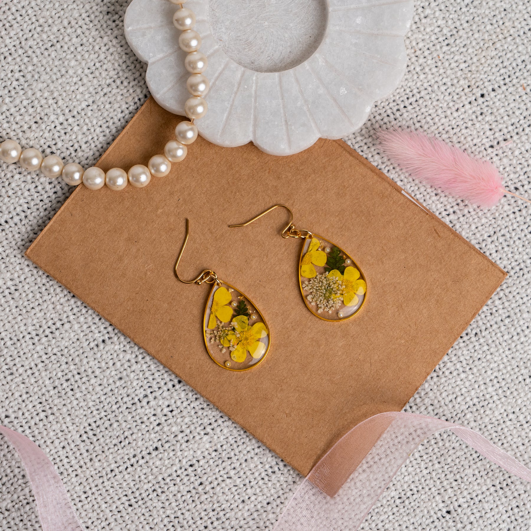 Note: These are real flowers preserved in a earrings. No flowers are same hence they might be a slight difference in the size or shape of the flower.